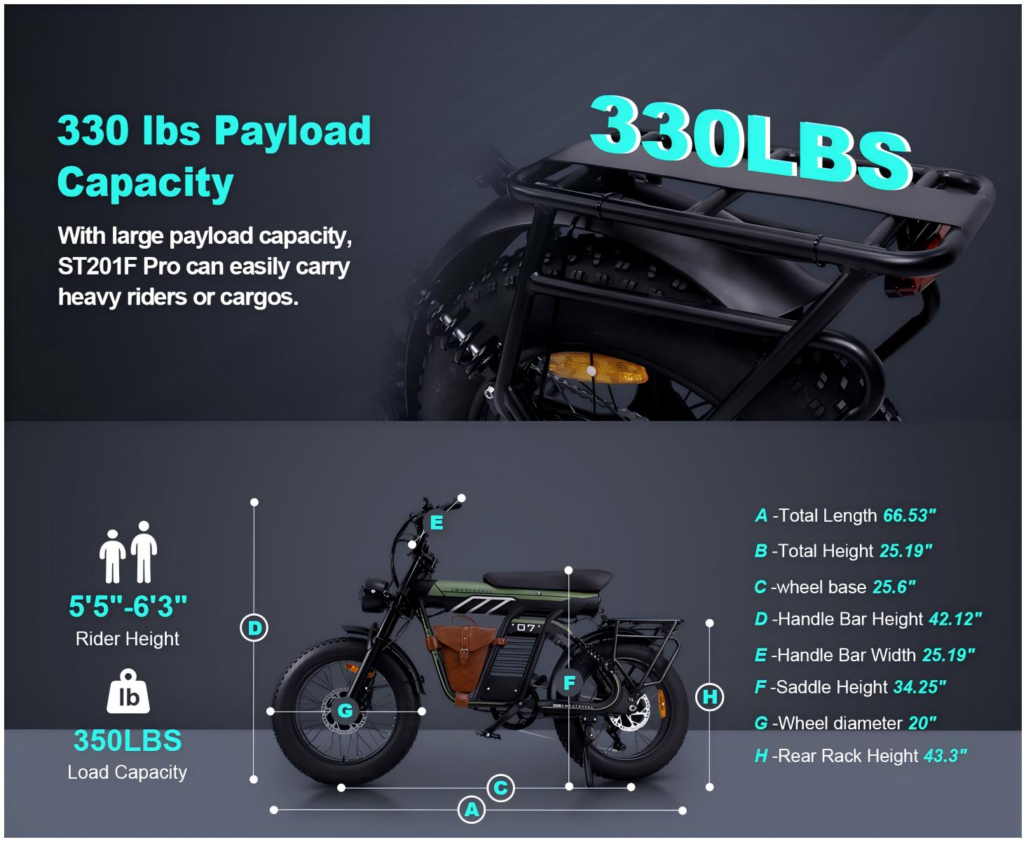Tires: 20"×4.0" Multi‑Terrain Fat Tires