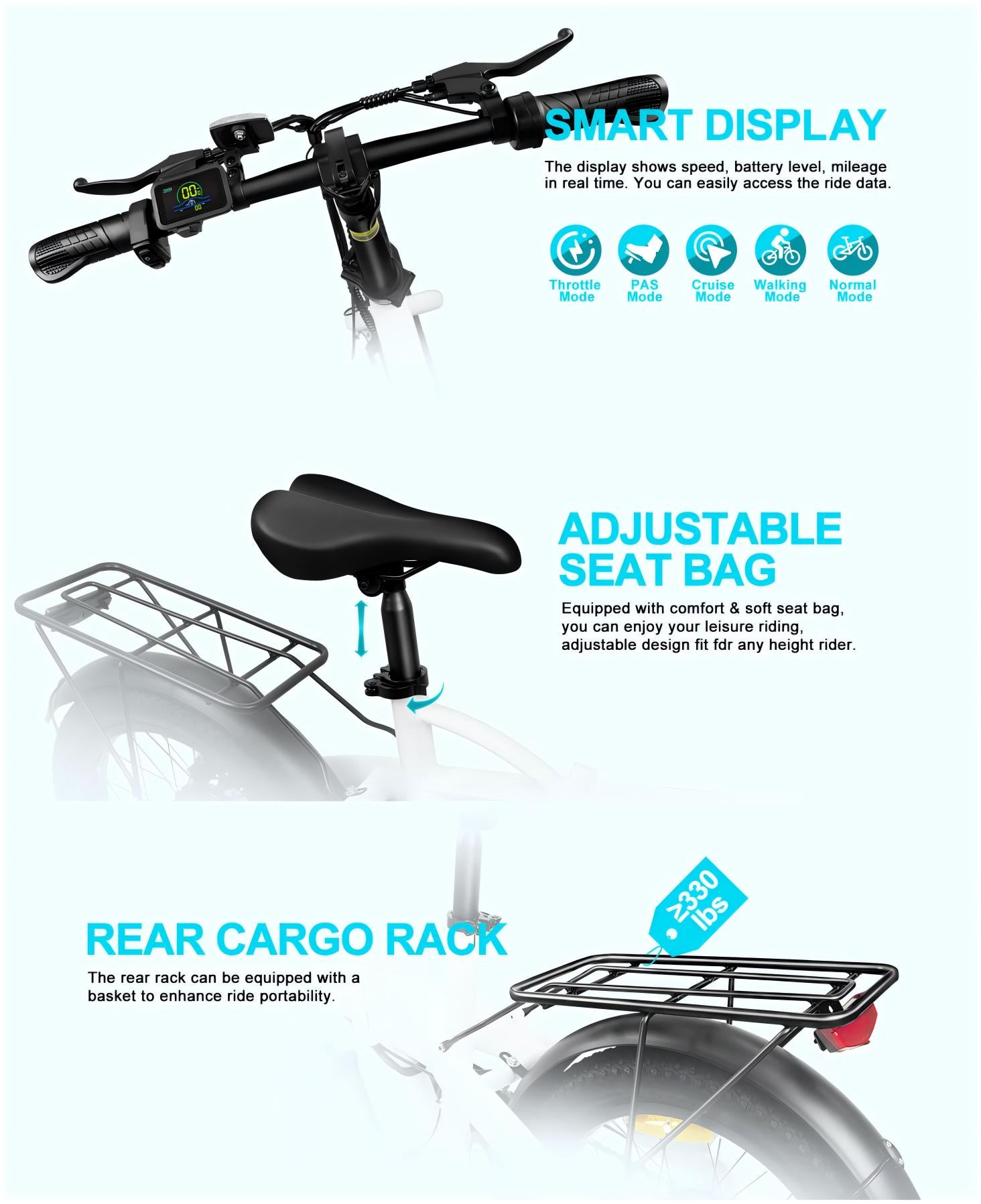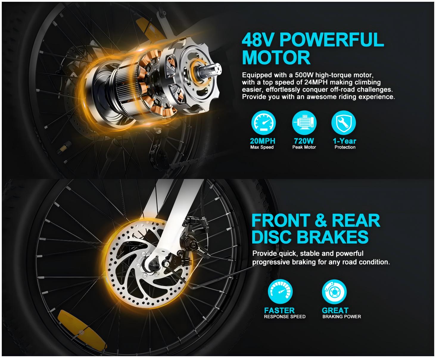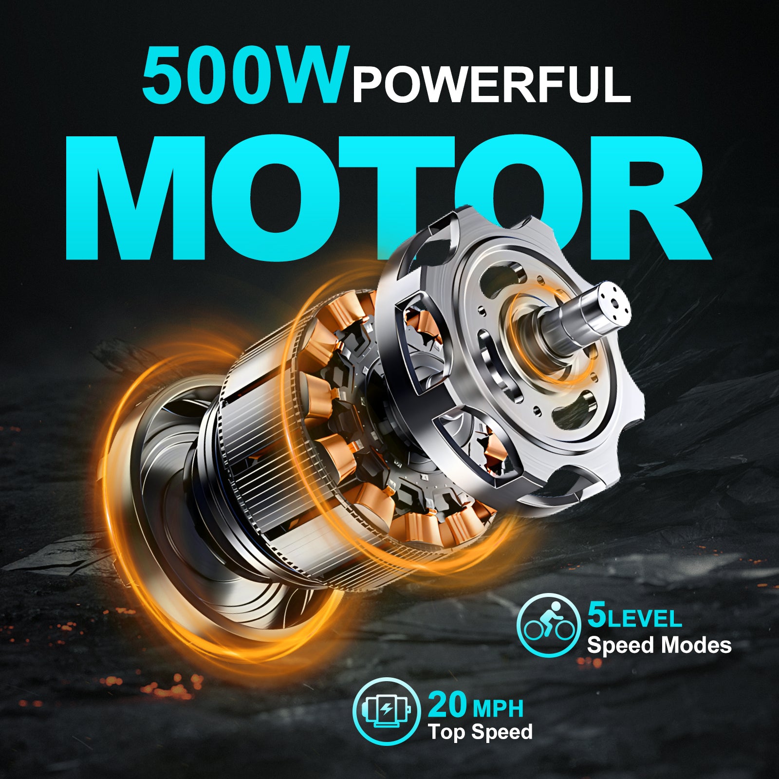 - Power-Optimized Performance — 500W brushless motor (1000W peak) delivers 20MPH acceleration. 20×3.0" fat tires navigate city streets with stability.