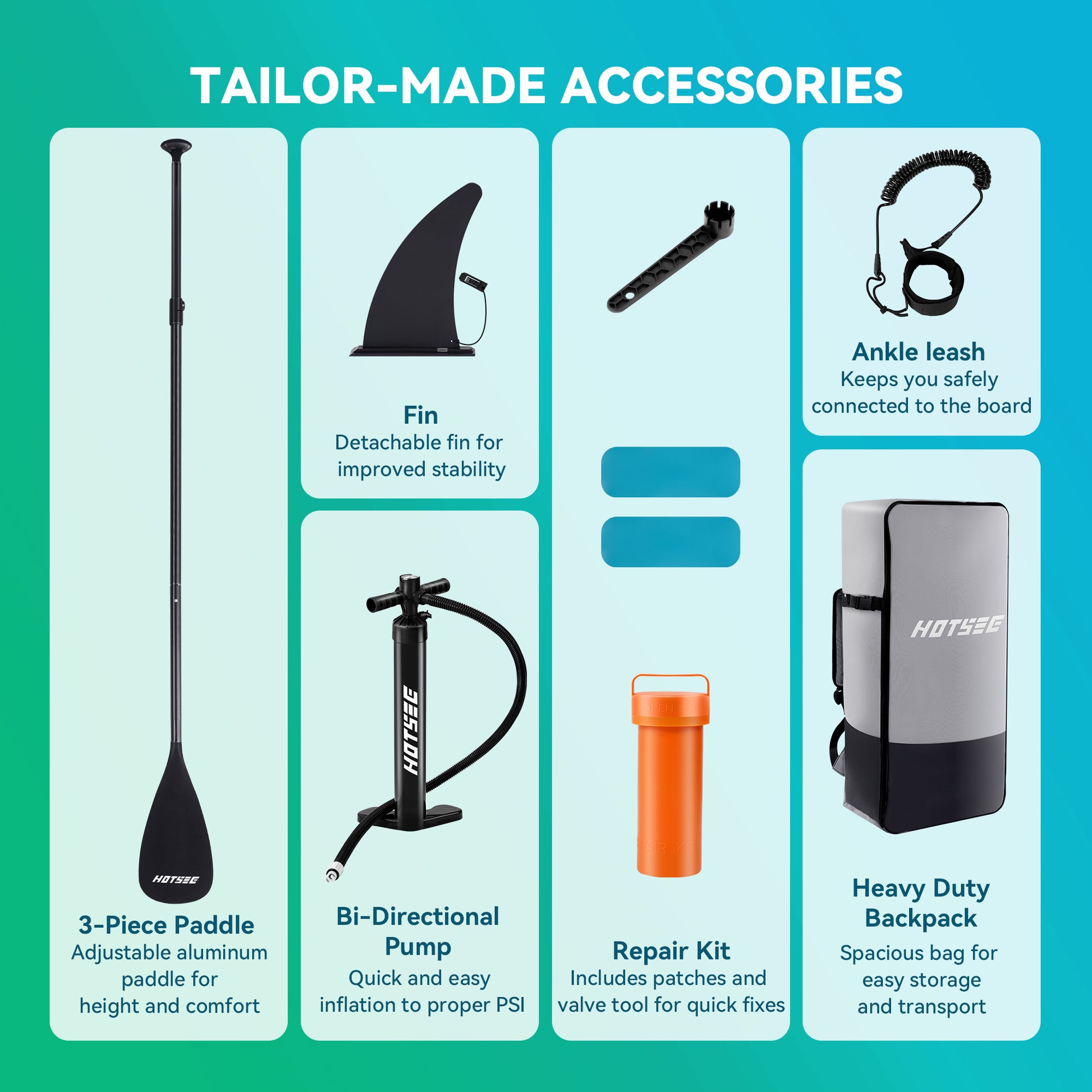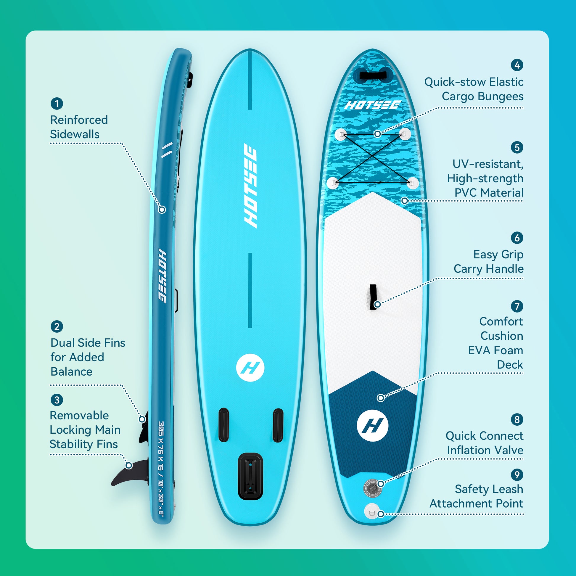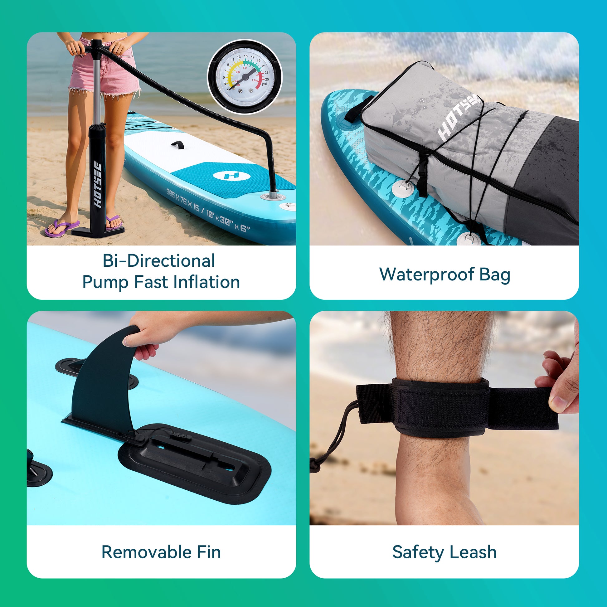 Hotsee 10' Inflatable Stand up Paddle Board 6'' Thick SUP Paddle Board with Accessories, Non-Slip Deck, Double Action Pump
