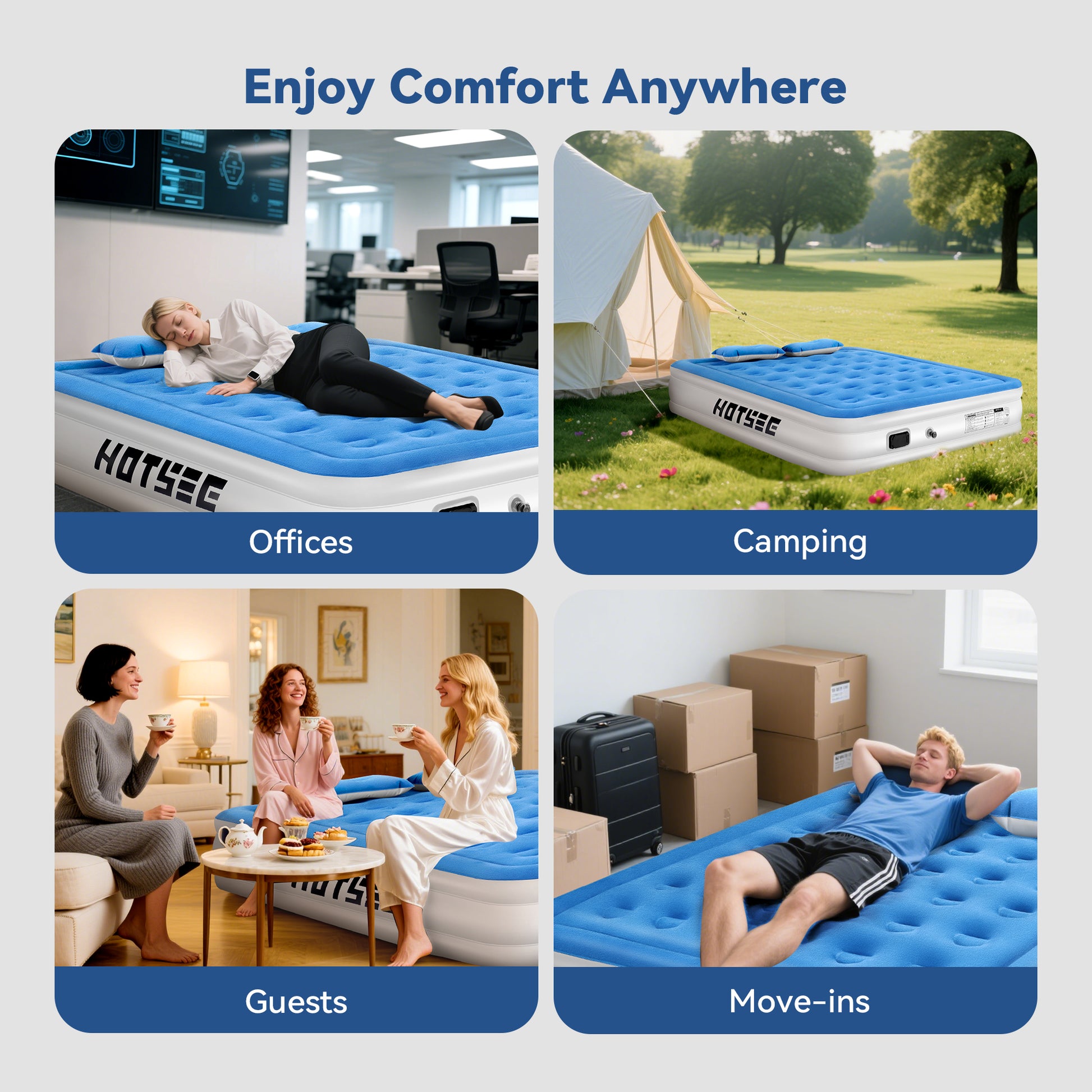 Ready for Guests Anytime – Comes with a compact storage bag for easy storage when not in use. Installs in minutes, perfect for overnight guests or last-minute needs. In addition, all Hotsee air mattresses come with a repair kit for easy repairs in case of accidental punctures or tears.